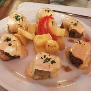 - Entre sus especialidades destacan el arroz con pato, arroz con bogavante, los langostinos en salsa Tío Pepe y las croquetas de berenjena. Los postres caseros, como el bolo de bolacha o la tarta de queso con frambuesa, son el broche de oro ideal para cualquier comida.