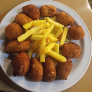 - El menú es amplio y ofrece opciones para todos los gustos: croquetas de espinacas y cañitas de crema para quienes buscan texturas suaves y sabores intensos, así como carnes como secreto ibérico y chuletillas de cordero, cuidadosamente preparadas.