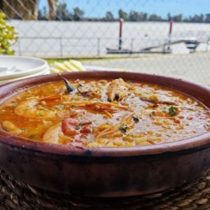 Un plato emblemático de La Puebla del Río que combina arroz con pato salvaje, cocido lentamente en un delicioso caldo de tomate, ajo y vino blanco. Su textura ligeramente caldosa y su intenso sabor representan a la perfección la rica tradición culinaria cigarrera.